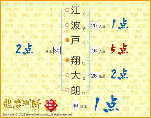 江波戸翔大朗さんの人運は16画の5点!