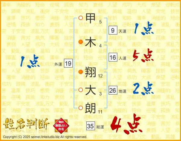 甲木翔大朗さんの総運は35画の4点!