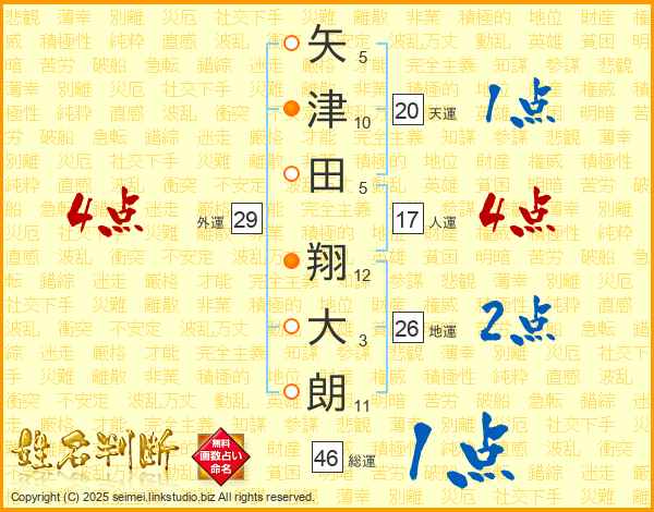 矢津田翔大朗さんの地運は26画の2点!