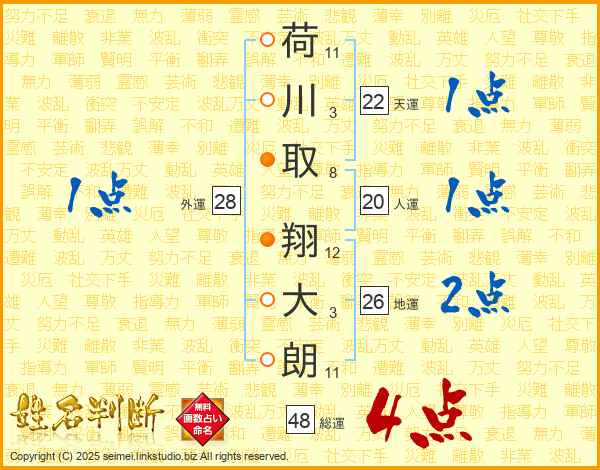 荷川取翔大朗さんの総運は48画の4点!