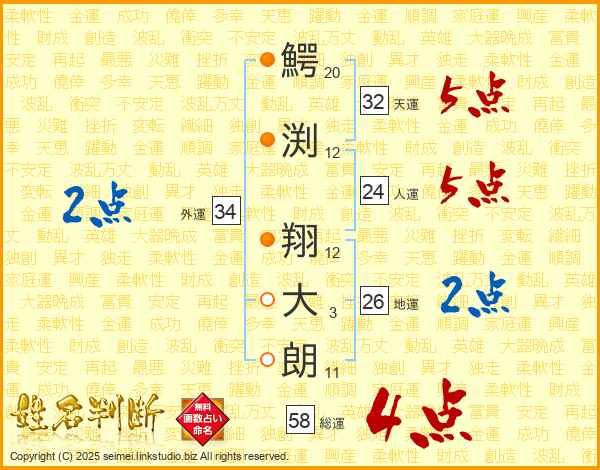 鰐渕翔大朗さんの総運は58画の4点!