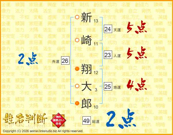 新崎翔大郎さんの総運は49画の2点!