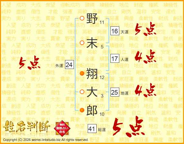 野末翔大郎さんの総運は41画の5点!
