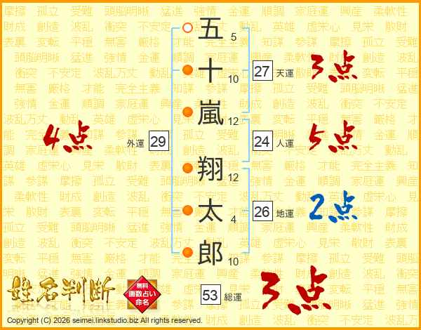 五十嵐翔太郎さんの総運は53画の3点!