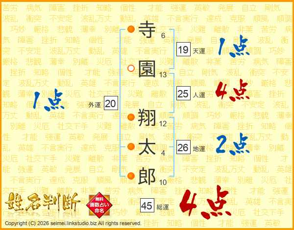寺園翔太郎さんの人運は25画の4点!