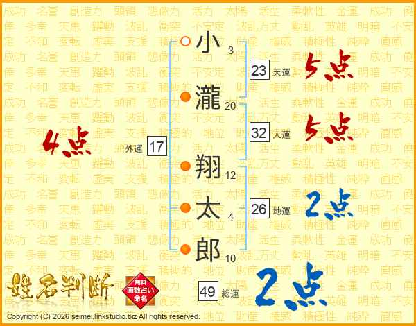 小瀧翔太郎さんの天運は23画の5点!