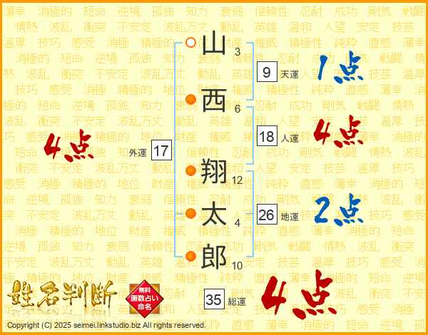 山西翔太郎さんの総運は35画の4点!