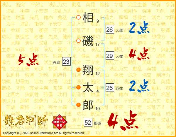 相磯翔太郎さんの総運は52画の4点!