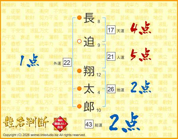 長迫翔太郎さんの総運は43画の2点!