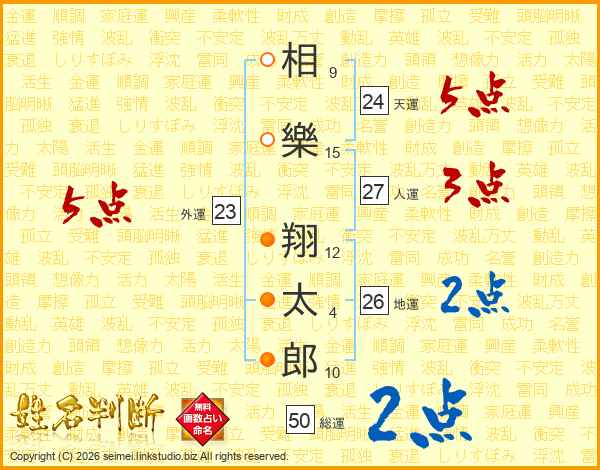相(9画)樂(15画) 翔(12画)太(4画)郎(10画)