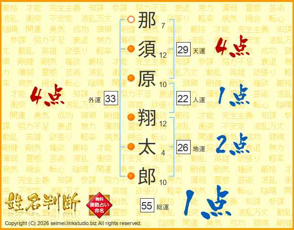 那(7画)須(12画)原(10画) 翔(12画)太(4画)郎(10画)