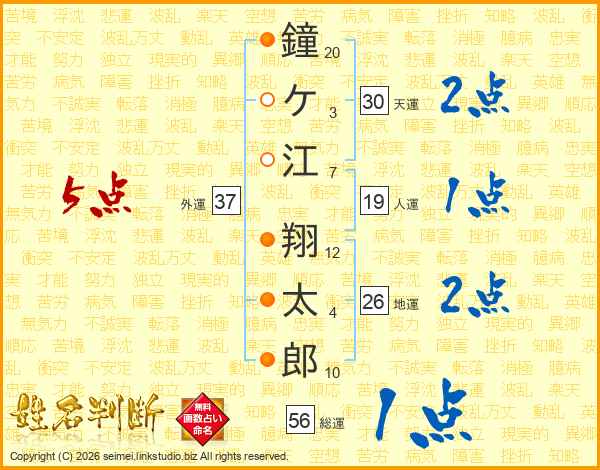 鐘ケ江翔太郎さんの外運は37画の5点!