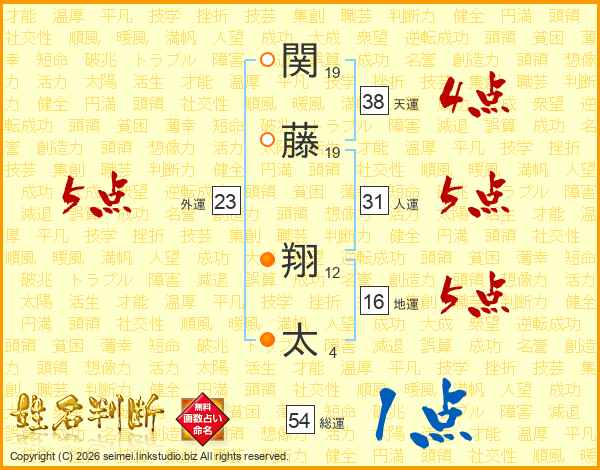 関藤翔太さんの天運は38画の4点!