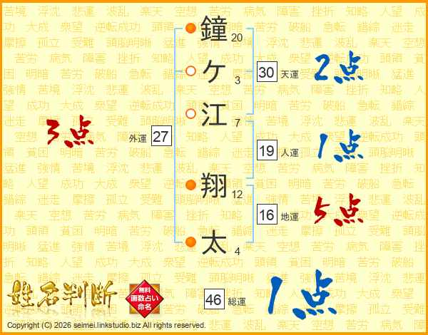 鐘ケ江翔太さんの総運は46画の1点!