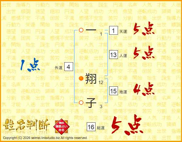 一翔子さんの総運は16画の5点!