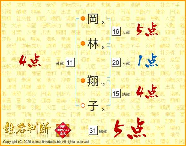 岡林翔子さんの総運は31画の5点!