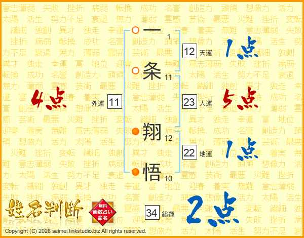 一条翔悟さんの総運は34画の2点!