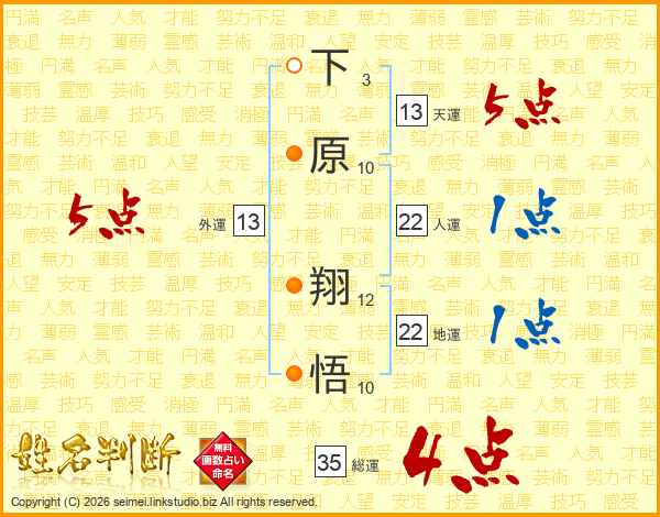 下原翔悟さんの天運は13画の5点!