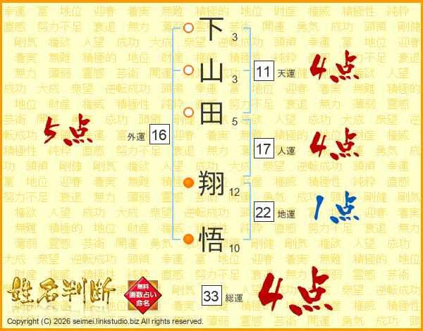 下山田翔悟さんの天運は11画の4点!