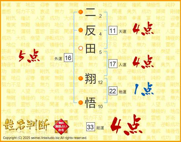 二反田翔悟さんの総運は33画の4点!