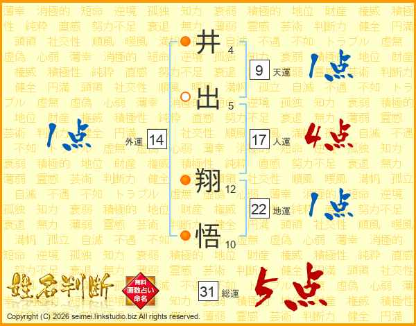 井(4画)出(5画) 翔(12画)悟(10画)