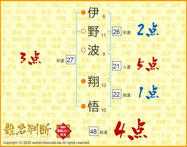 伊野波翔悟さんの天運は26画の2点!