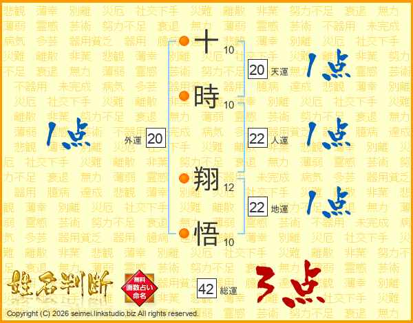 十(10画)時(10画) 翔(12画)悟(10画)