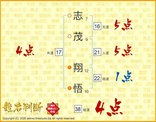 志(7画)茂(9画) 翔(12画)悟(10画)