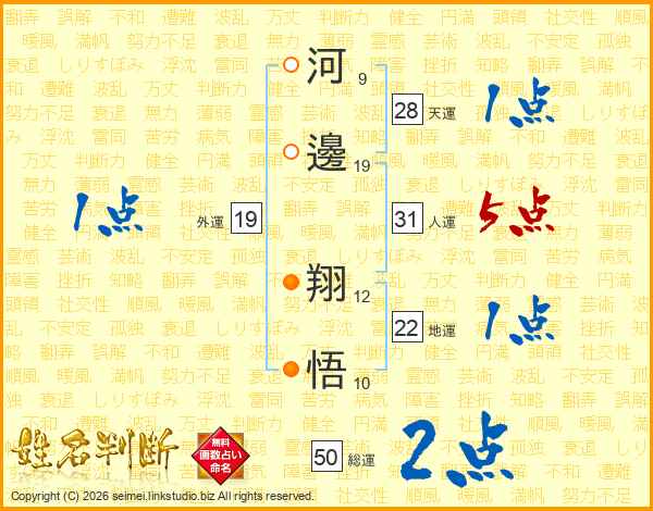 河邊翔悟さんの地運は22画の1点!