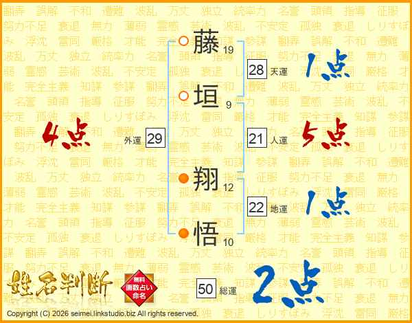 藤垣翔悟さんの総運は50画の2点!