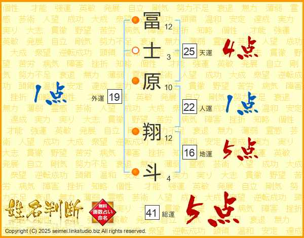 冨(12画)士(3画)原(10画) 翔(12画)斗(4画)