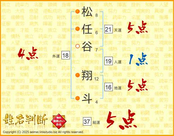 松(8画)任(6画)谷(7画) 翔(12画)斗(4画)