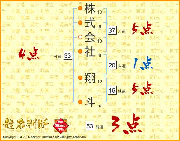 株(10画)式(6画)会(13画)社(8画) 翔(12画)斗(4画)