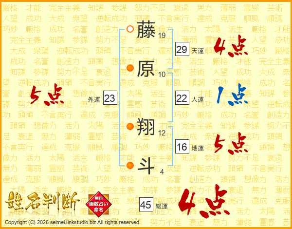 藤(19画)原(10画) 翔(12画)斗(4画)