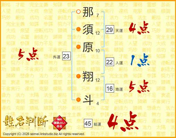 那(7画)須(12画)原(10画) 翔(12画)斗(4画)