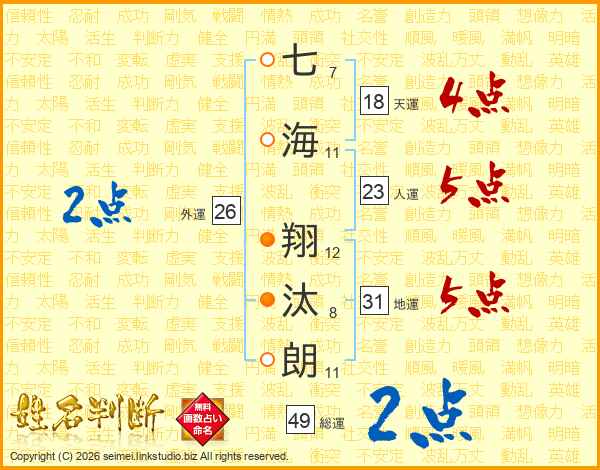 七海翔汰朗さんの総運は49画の2点!