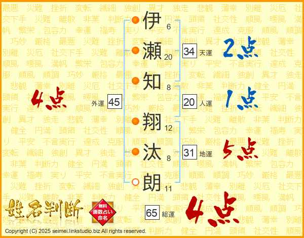 伊瀬知翔汰朗さんの総運は65画の4点!