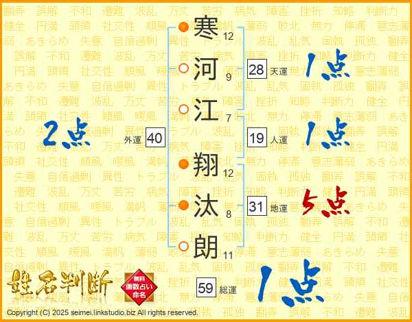 寒(12画)河(9画)江(7画) 翔(12画)汰(8画)朗(11画)