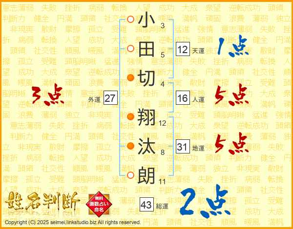 小田切翔汰朗さんの地運は31画の5点!