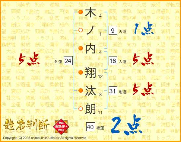 木ノ内翔汰朗さんの総運は40画の2点!