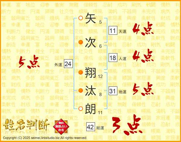 矢次翔汰朗さんの地運は31画の5点!