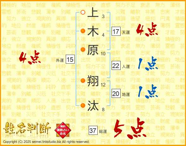 上木原翔汰さんの総運は37画の5点!