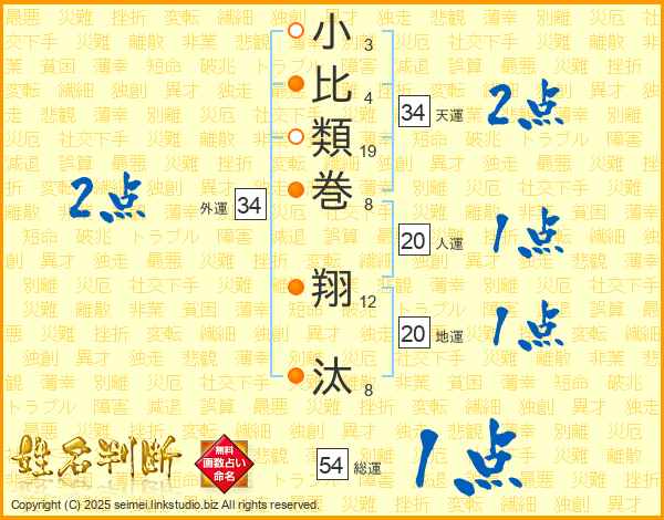 小(3画)比(4画)類(19画)巻(8画) 翔(12画)汰(8画)