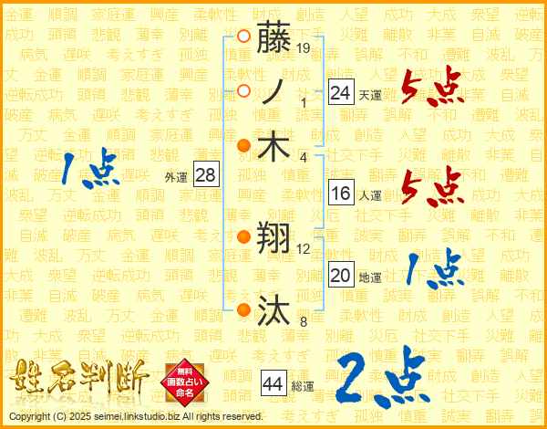 藤(19画)ノ(1画)木(4画) 翔(12画)汰(8画)