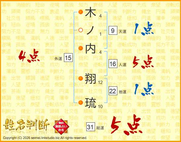 木ノ内翔琉さんの総運は31画の5点!