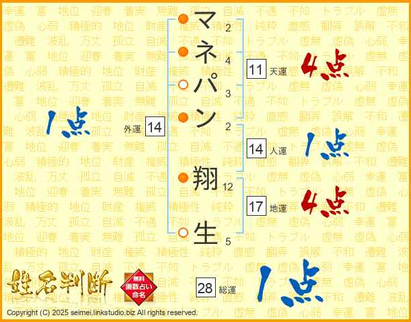 マネパン翔生さんの総運は28画の1点!