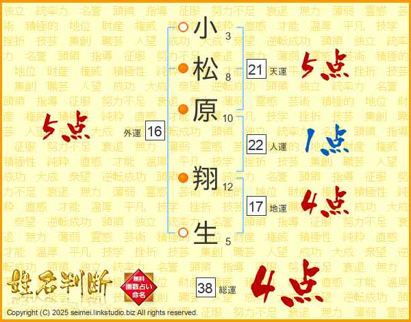 小(3画)松(8画)原(10画) 翔(12画)生(5画)