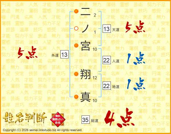 二ノ宮翔真さんの外運は13画の5点!