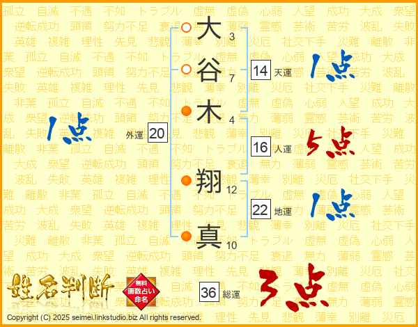 大谷木翔真さんの総運は36画の3点!