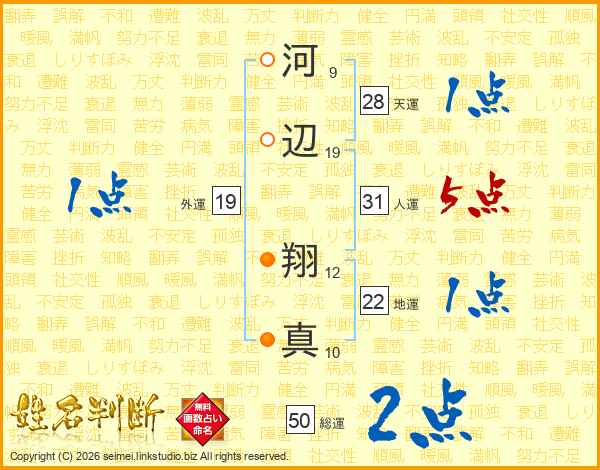 河辺翔真さんの人運は31画の5点!